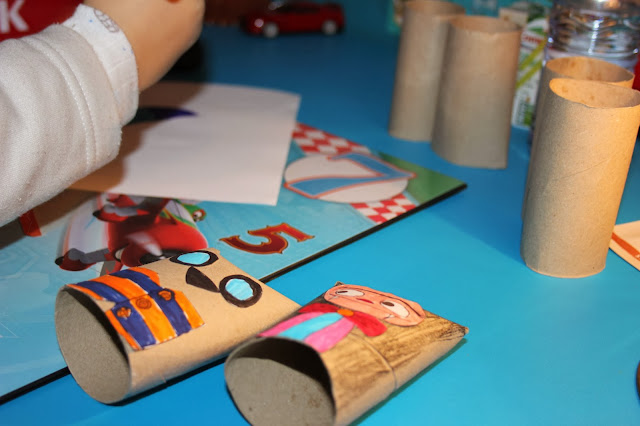 Ontem como tinha dito, eu e o B tentámos fazer bonequinhos de rolos de papel higiénico.